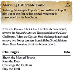 Your story is divided into Challenges made up of these Resources; usually mostly from one category, but they sometimes mix-and-match, like stirring Defiance into a Battle Challenge or Strategy into a Bargaining session.